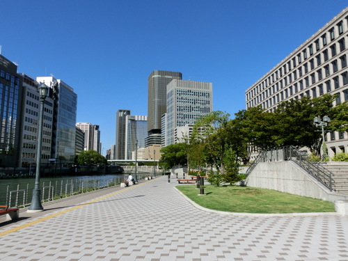 このあたりは春になると桜の名所になります。橋を渡った場所から右側に少し行くと有名な「造幣局の桜の通り抜け」があります