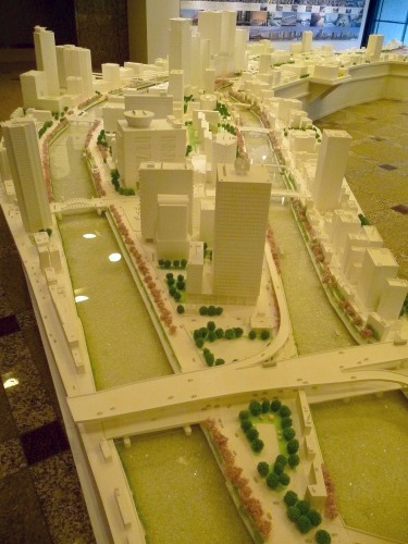 イイ風景です。建て替えられる「ダイビル本館」「新ダイビル」「住友中之島ビル」建設中の「堂島タワー」あたりは模型が製作されていません