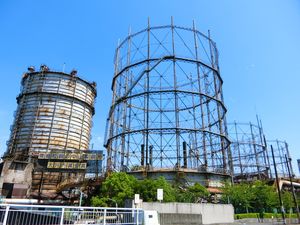 中山製鋼所船町工場は昭和初期に操業を開始した歴史ある工場で官営八幡製鐵所(現新日鐵住金)、日本鋼管(現JFEスチール)に続く日本三番目の高炉(2002年に休止)を有していました。 敷地面積は全体で約45万m2。そのうち転炉工場は6万m2を占めていました。