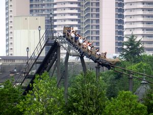 ヒッポグリフがお客を乗せてます。歓声やパーク内で流れる音楽も聞こえてきます。 |