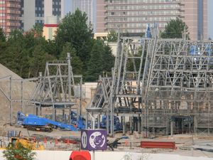 敷地の一番東側ではコースターの設置が本格化。その形状からして子供向けのローラーコースター「Flight of the Hippogriff -ヒッポグリフの飛行-」 だと思われます。 |