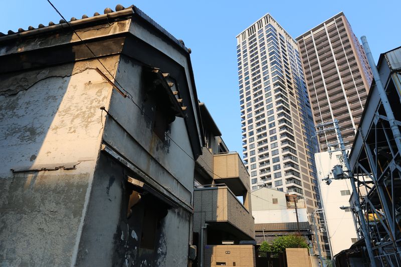 都市の片隅に残る土蔵と超高層ビルとのコラボ