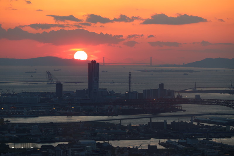 あべのハルカスの開業日、展望フロアからはこんな素晴らしい夕陽が見えました。沈み切ると皆が拍手