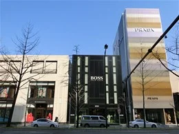 御堂筋に沿ってバーバリー、ヒューゴボス、プラダが並ぶ